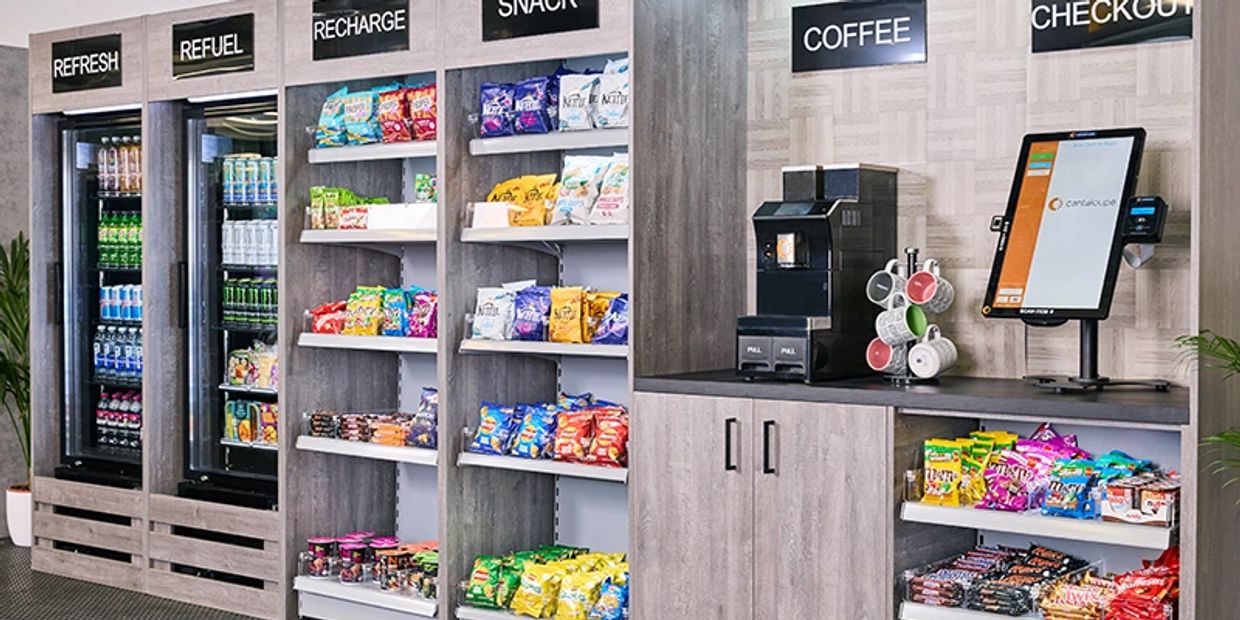 Employees or visitors can quickly select and check out snacks and meals to keep work flow productive